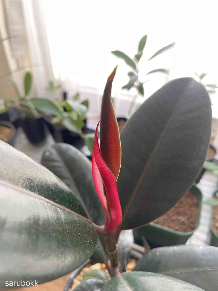 真っ赤な薄皮を脱ぎ捨てる新芽( ´∀` )/
