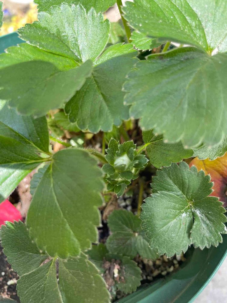 イチゴの蕾見つけました、今年も大きな実がつくかな?