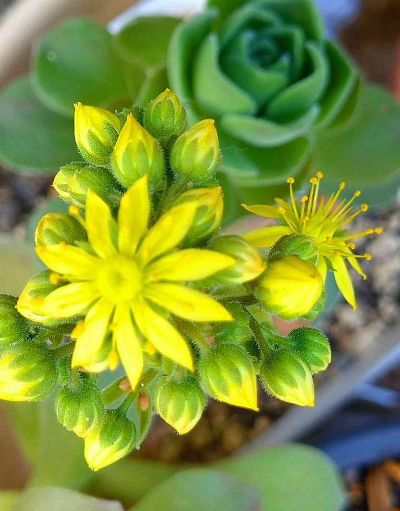 アエオニウムの花は初めてのです!花が咲くと枯れるとか😅