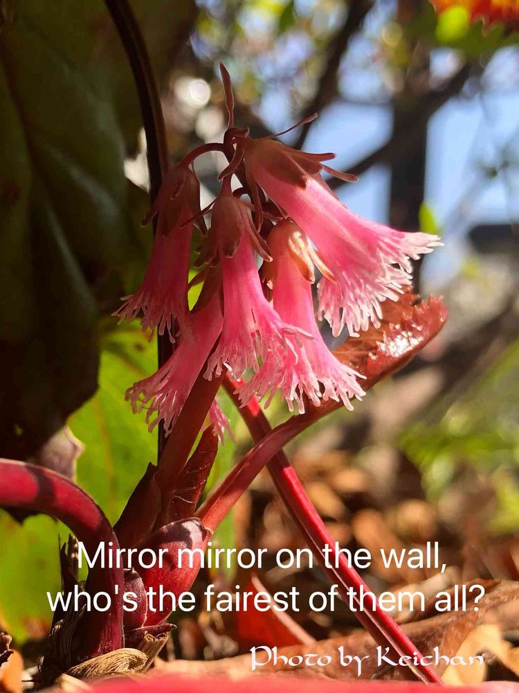 *名前の由来 岩場に多く生え、葉に光沢があることから「鏡」に見立てた