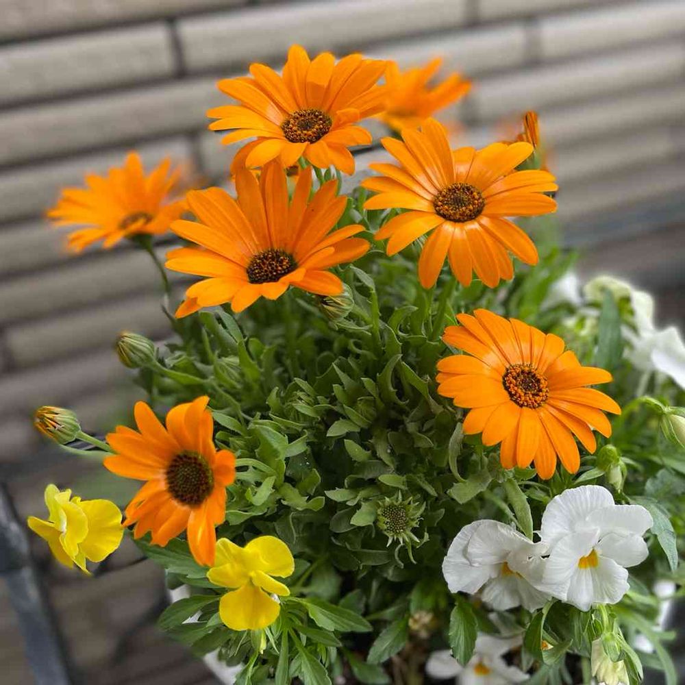 ディモルフォセカと種から育てたよく咲くスミレの寄せ植え