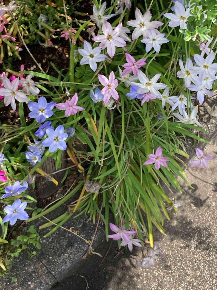 何か可愛い、色んな色のハナニラが一緒に見える