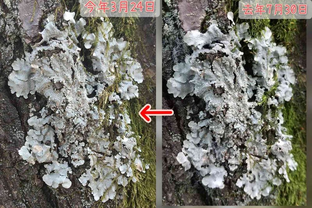 ごく少しですけど、地衣類にとっては大きな成長ですね😊
