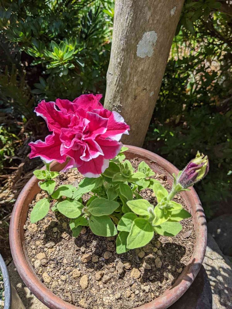 フリル咲き、、ペチュニアを買って、植えていたのが、咲いてくれました。もう1つは、ハンキングに植えています。😱🌼