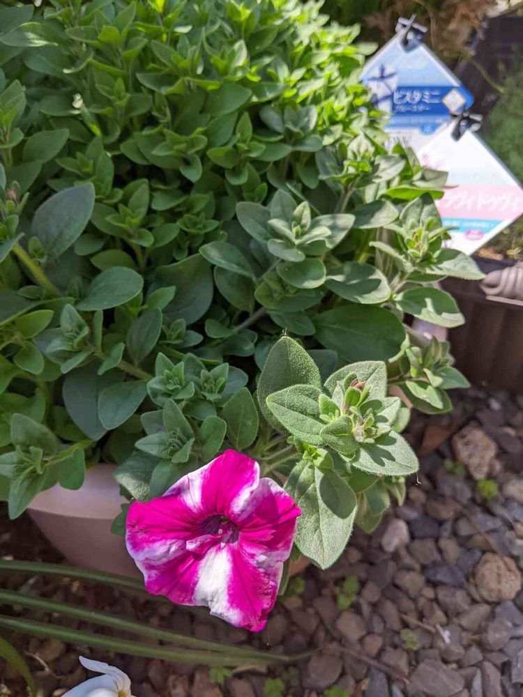 スーパ~チュニア花が咲きましたね。ナス科ペチュニア属と書いてあります。