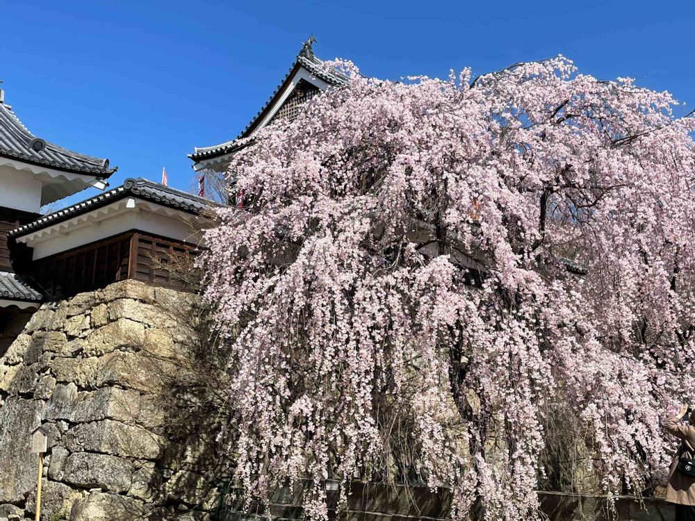 お城の入り口の巨大な枝垂れ桜です🌸🌸🌸
