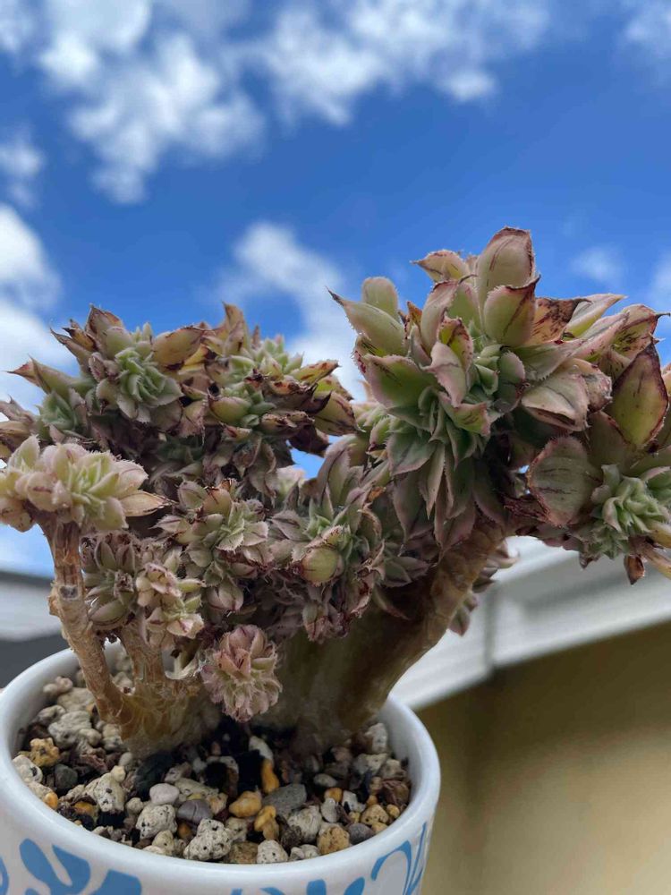 綺麗な青い空✨✨ サンバーストさん、復活良かったです❣️ 私も去年やらかしてしまい、なんとか今春少し復活してました☺️ 多肉ちゃんは強いね✨✨