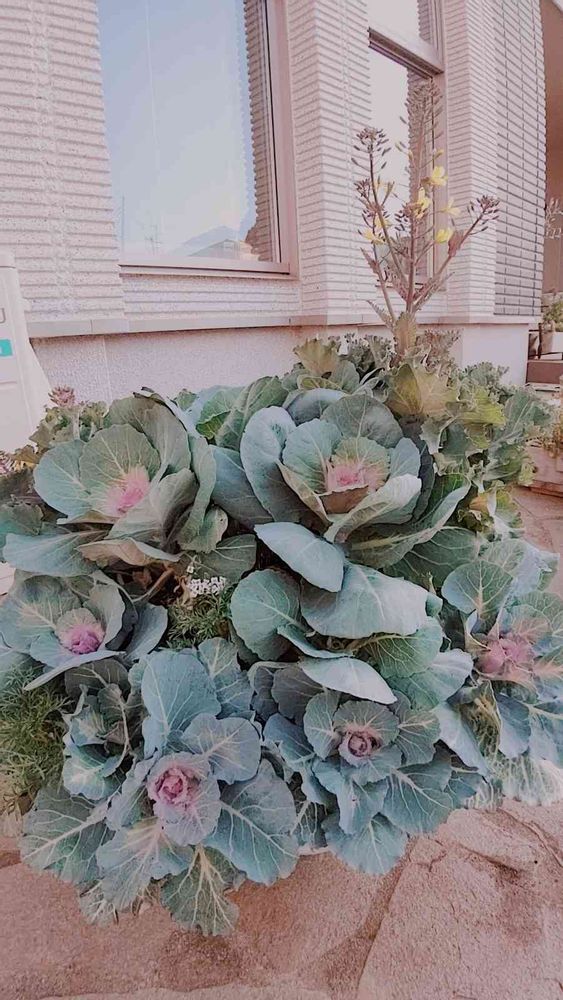 ミニではなく大きい葉牡丹。たくさんあり花が咲いているのもあればいろいろです。