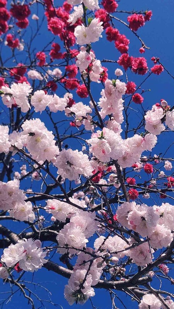 赤白ピンクといろんな色の桃の花が素敵です😍