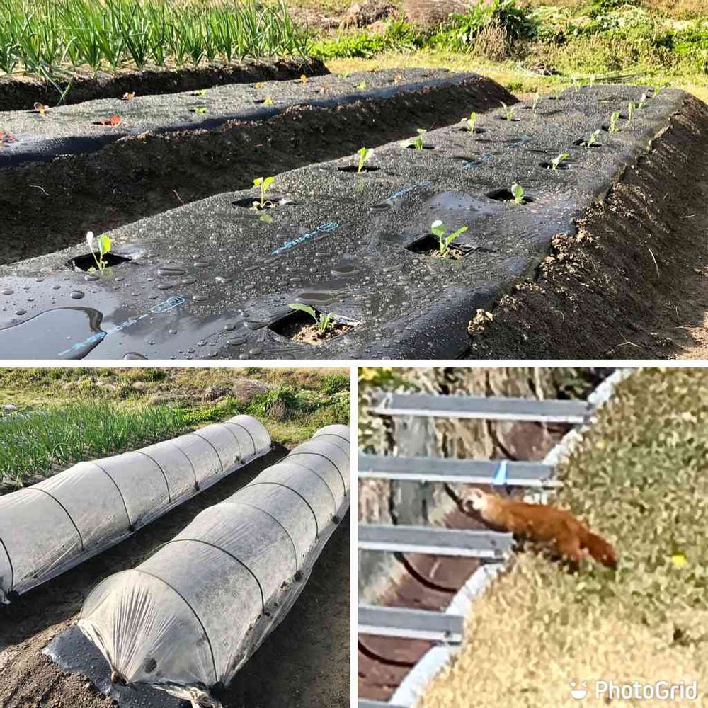 植え付け後は、防寒・防虫を兼ねた不織布トンネルを掛けておいた。