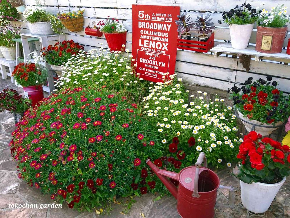 パステルな爽やかな色味が春〜♪なところをあえて、赤い花壇に挑戦してみたんですぅ。雑貨も赤にペイントしたり、ハンドメイドしてみたり、集めてみました。
