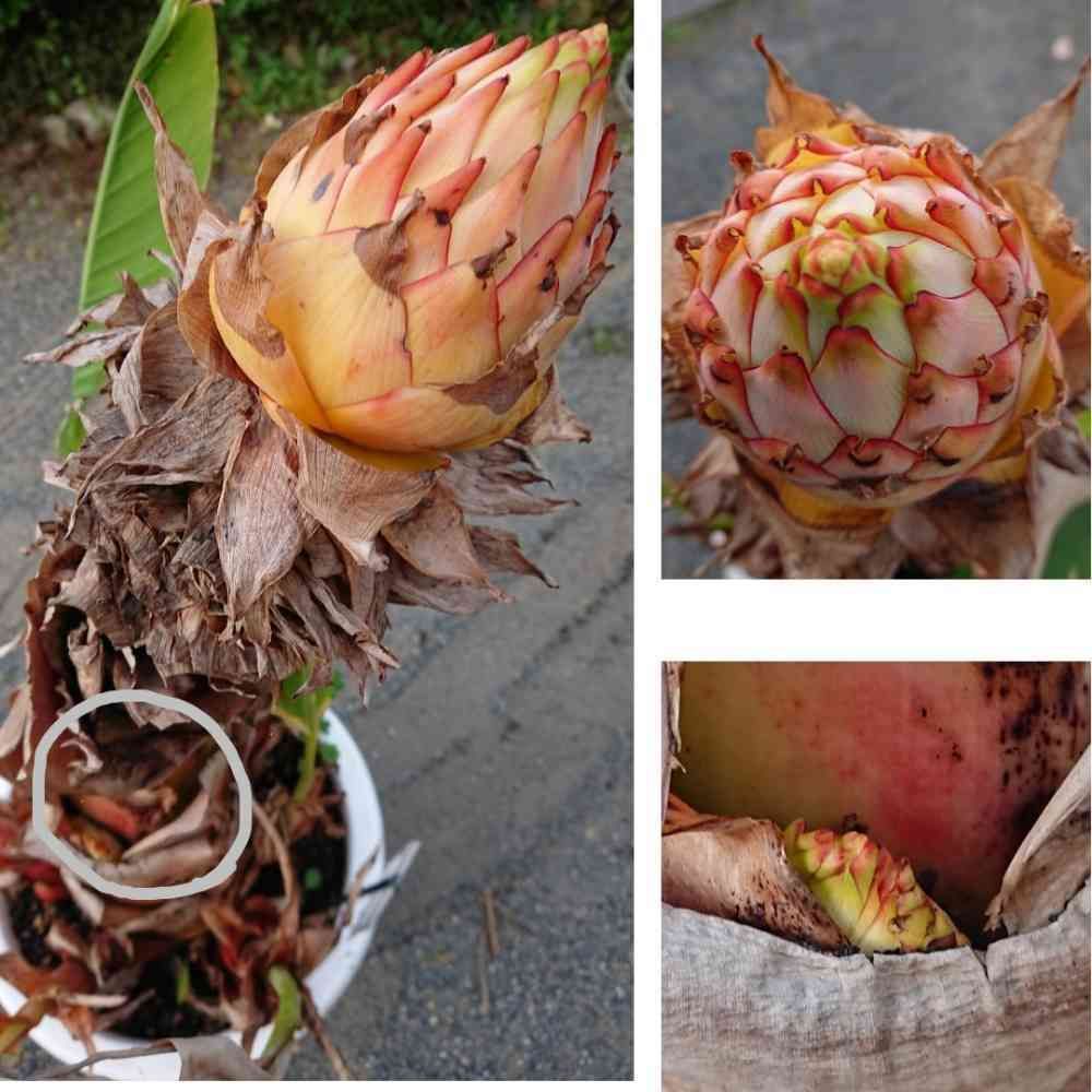 まるをした部分を右下の写真で拡大してます。見て下さい(「・・)何かでてきてます。ここにまたお花が咲くのでしょうか❓