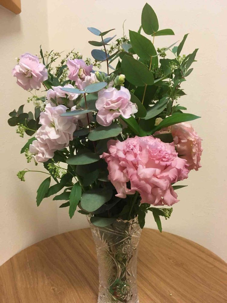 返却の祝スタンドより、まだイケそうな花を頂いたので適当に花束にしてみました(^^♪