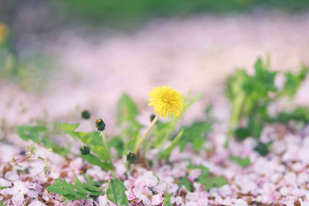散った桜の上に綺麗なたんぽぽが咲いてました😘