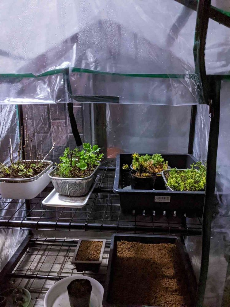 こんばんは🙂冬越し用のハウスは、今日から挿し木と種うえ用のハウスに〜!😆うまく活きますように〜😇