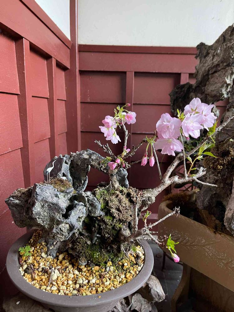 2年前に石付き盆栽に仕立てた一才桜。今年も咲いてくれました。