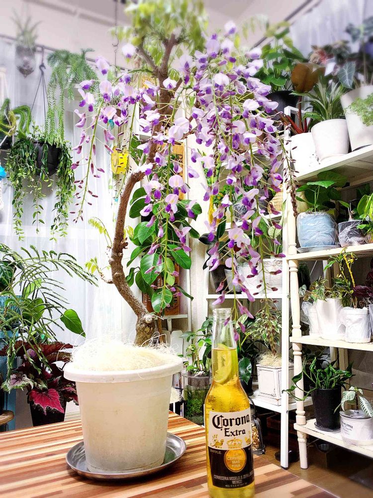 今日は藤でお花見しながらコロナ飲んでます🍺