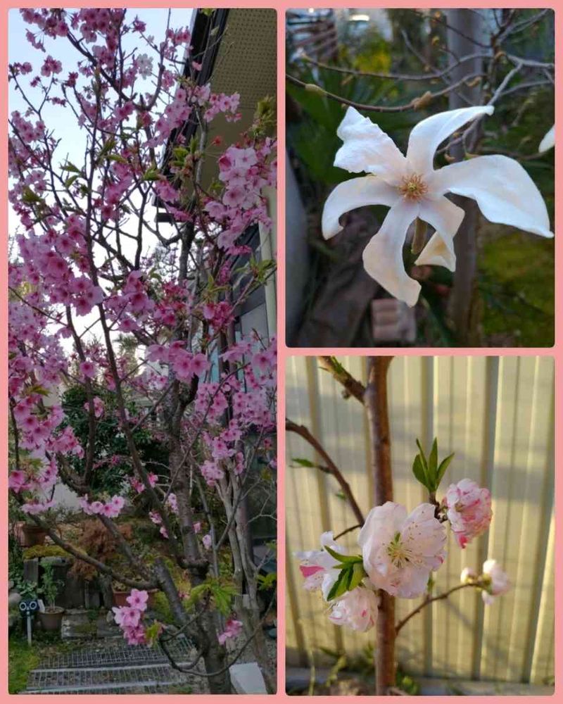 急に暖かくなったからか陽光桜·コブシ·源平花桃と庭や玄関先にお花が咲き誇っています。中でもコブシは今まで咲いているのを観たことなかったので目新しいです。