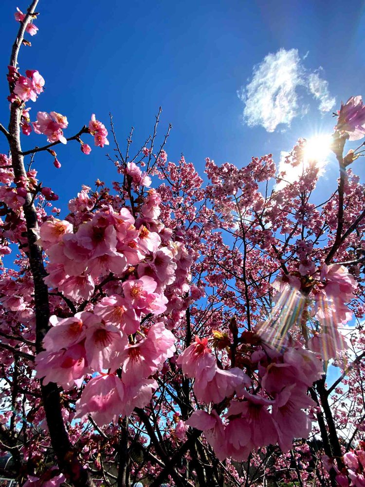 苗を植えて7年目の寒緋桜🌸 どんどん逞しく成長してます! 濃ゆい色のピンクが鮮やかで 大好き❣️