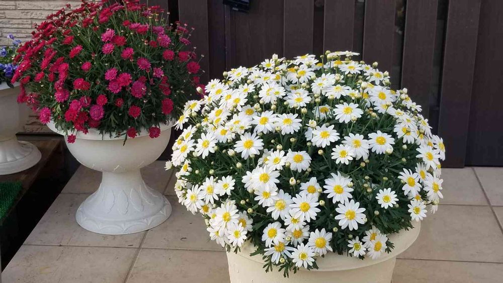 4鉢のマーガレットを
