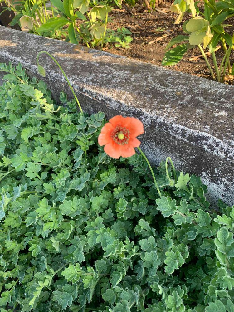「ポピー(ながみひなげし)」かも!です。ちょっとした場所にコンニチワしてますよね。🥰
