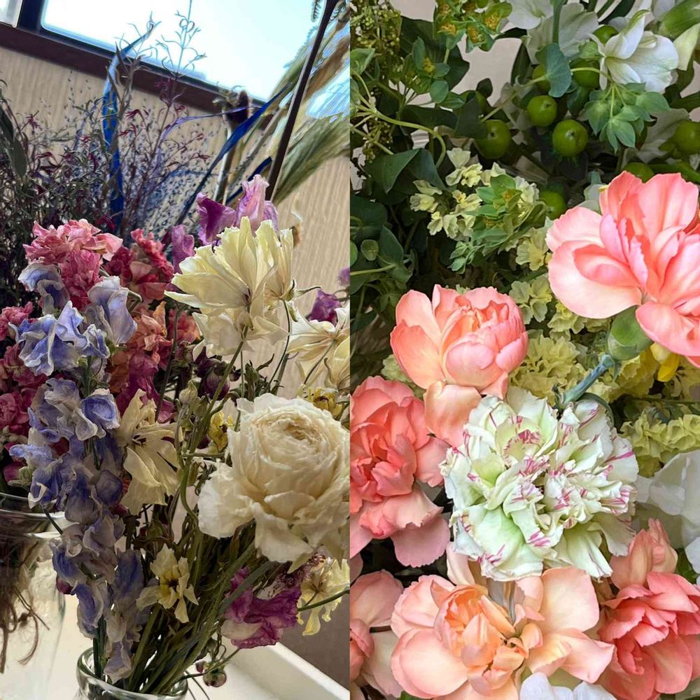 コチラの花は職場のフラワーアレンジの廃棄前に頂いてドライフラワーにしたり、挿木にしたりするお花達の一部です。