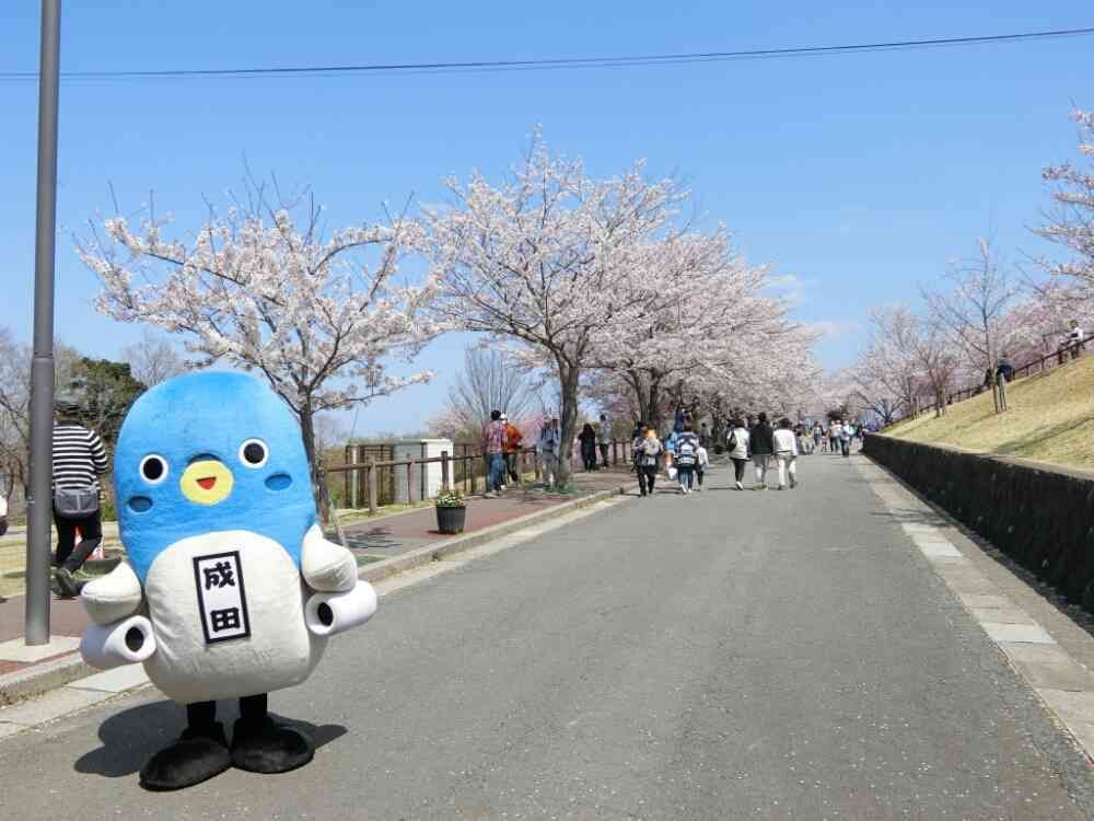桜とのコントラストが美しい、青空に負けない、うなりくん