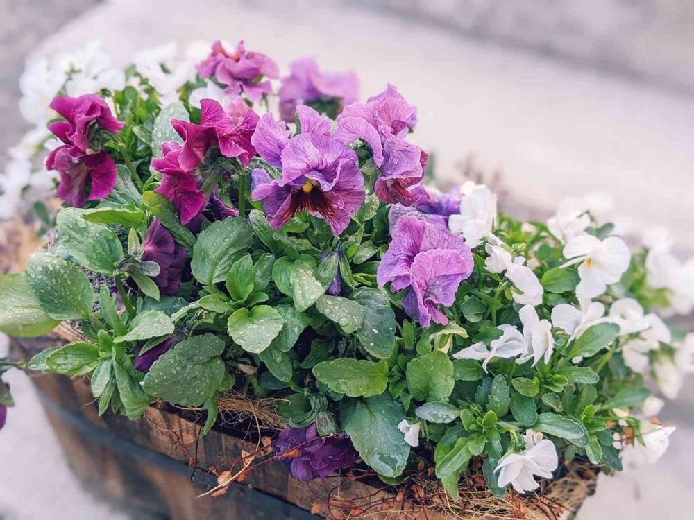 名もなきホワイトビオラと🤍うえたビオラ💜
