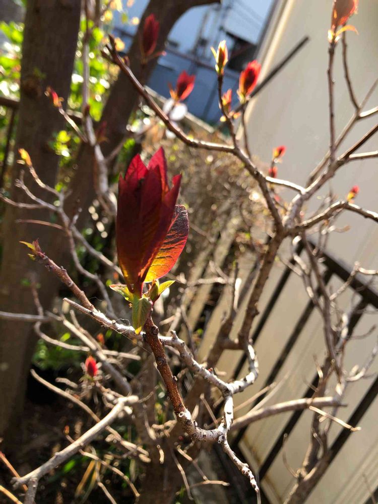 スモークツリーもちゃんと芽が出てきました💖小さな庭に嬉しいがいっぱい🤗🎶🎶🎶