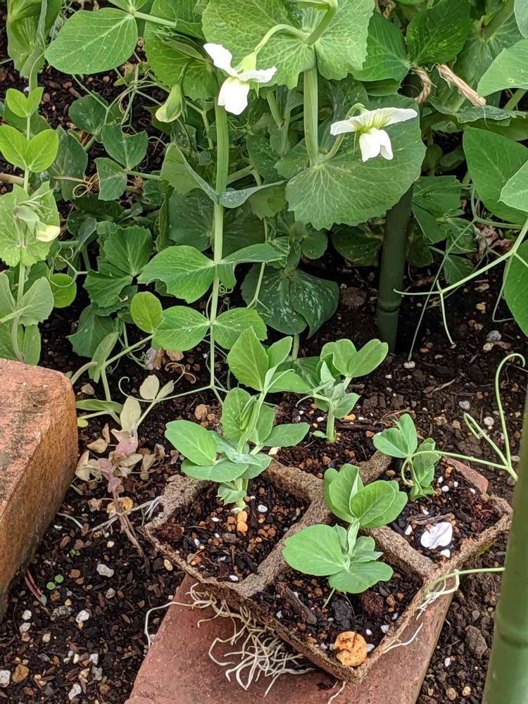 後から、種まきしたスナップエンドウ。