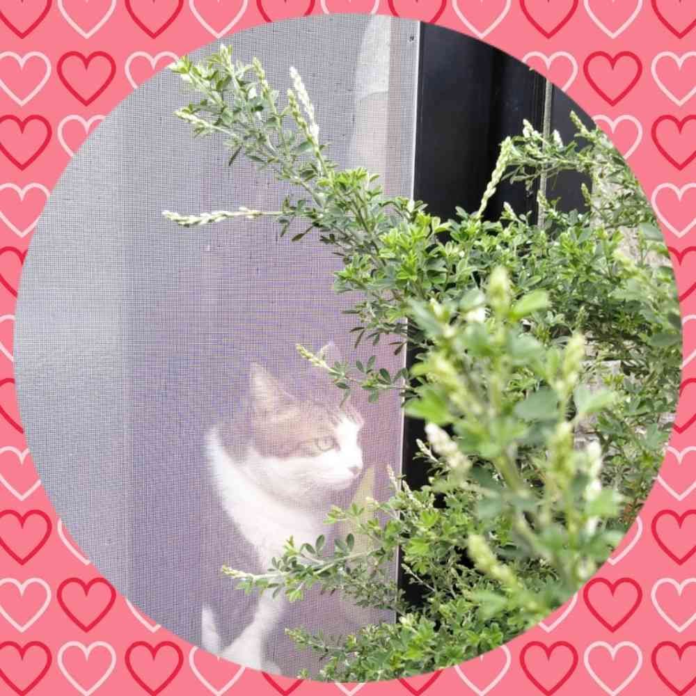 エニシダです、まだ蕾😄網戸越しにはるちゃんが😺外を見るのが大好きで網戸も開けちゃう力持ちです😼
