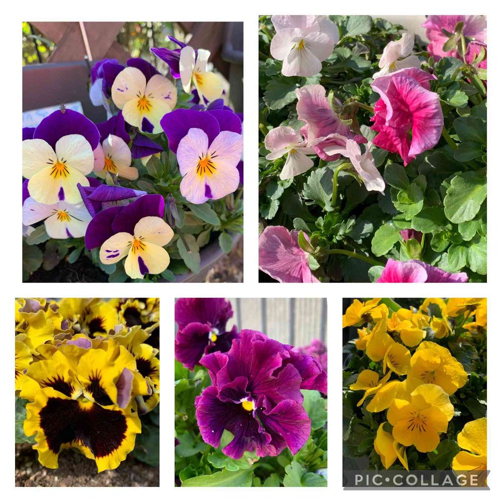 パンジーが沢山咲いてます。やっと暖かくなってきました。