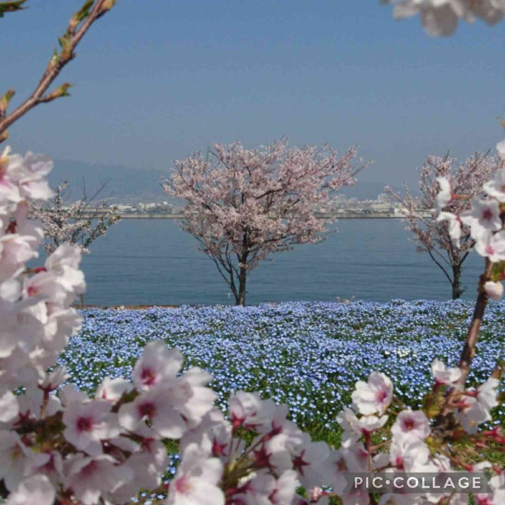 海と桜とネモフィラのコラボはサイコーでした😃⤴️⤴️