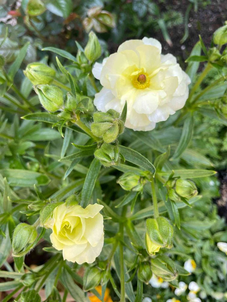 花壇植えの2年目、ラナンキュラスラックス グレーシスも開花✨✨✨エリスに比べて小ぶりだけど、蕾が沢山!満開が楽しみ💕