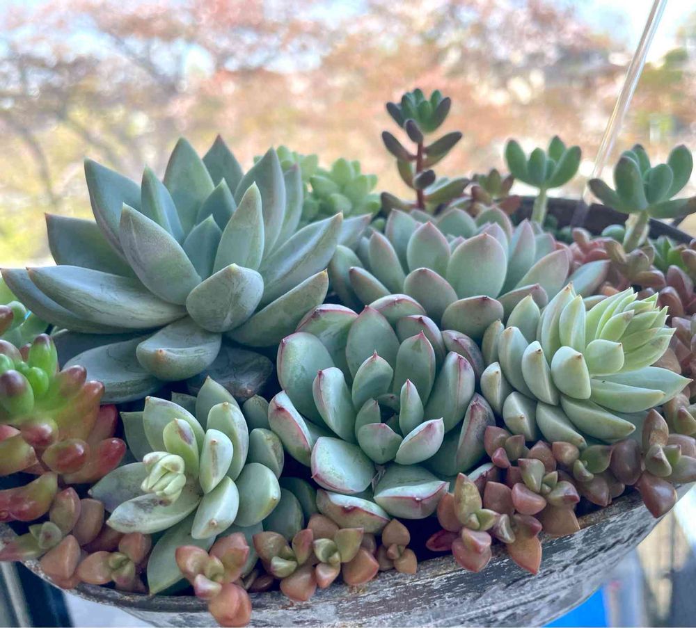 室内で冬越ししてちょっと外出したら葉焼けした弱々な寄せ植えをずっと室内に放置してたら、、、