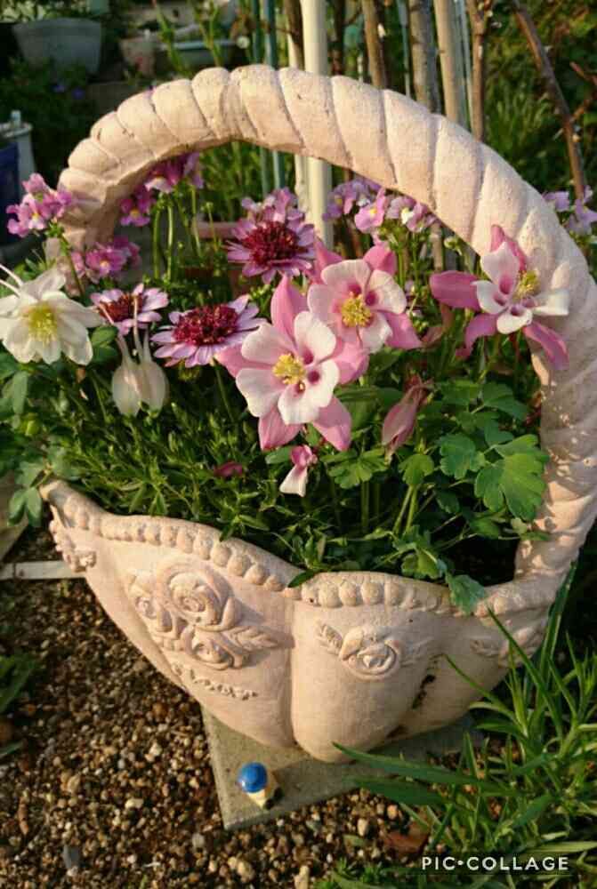持ち手が付いてる植木鉢可愛いでしょう🤗だいぶ前に母の日に息子から貰ったので大事に使ってます。私的にはピンク系寄せ植えの方がピッタリ来るみたいよ(*˘︶˘人)♡*。褒めてくれてありがとうね🌸