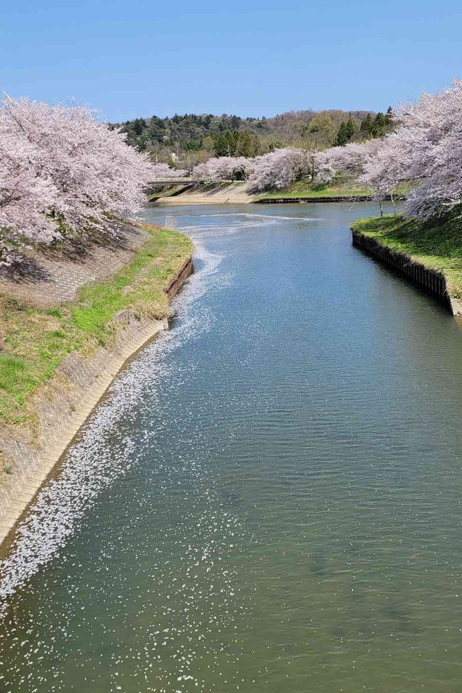 風光明媚な場所でのサクラ🌸と川に落ちた花びらとてもステキですね。🌸🌸🌸