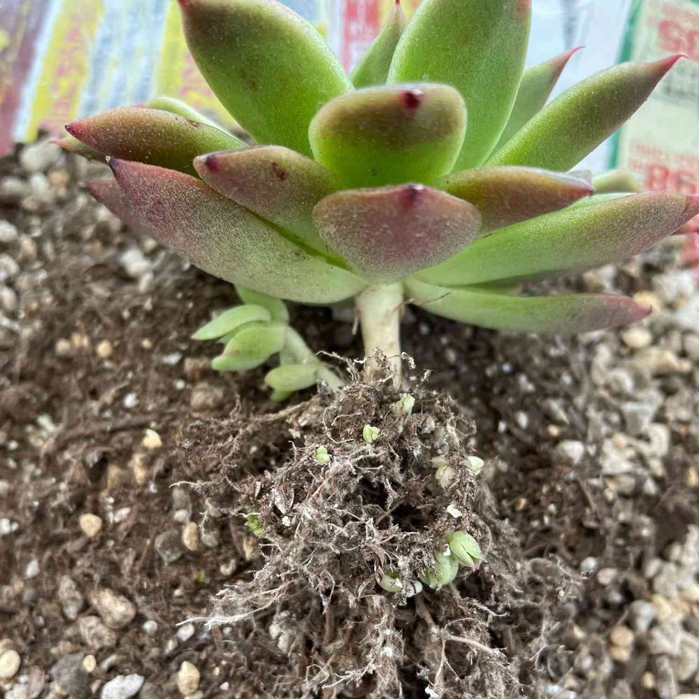 エケベリアのエリザベスを植え替えていたのだけれど、土の中根っこに子ども?がいっぱい。