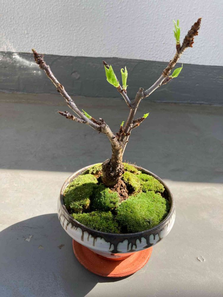 苔玉の旭山桜🌸をヤマゴケで盆栽にしました。