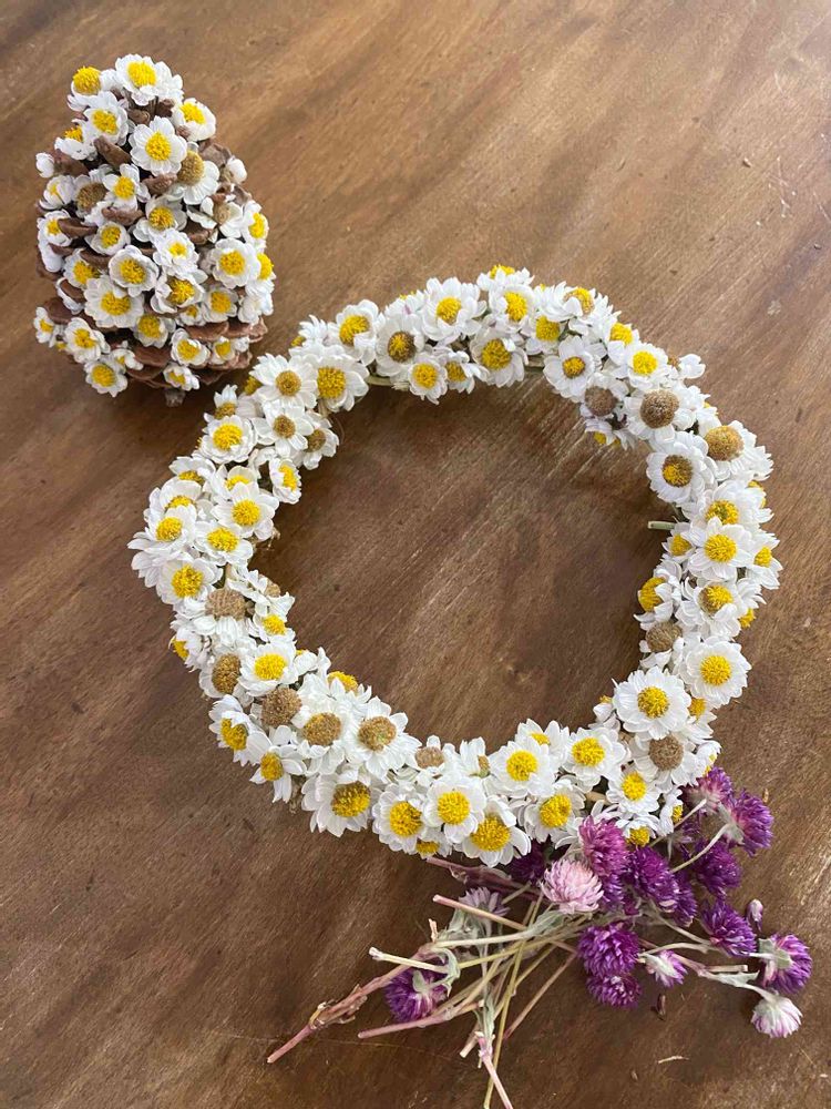 私も今日、花かんざしのリース作りましたよ〜🌼途中、ロウがなくなってまだ完成出来てないのですが😅