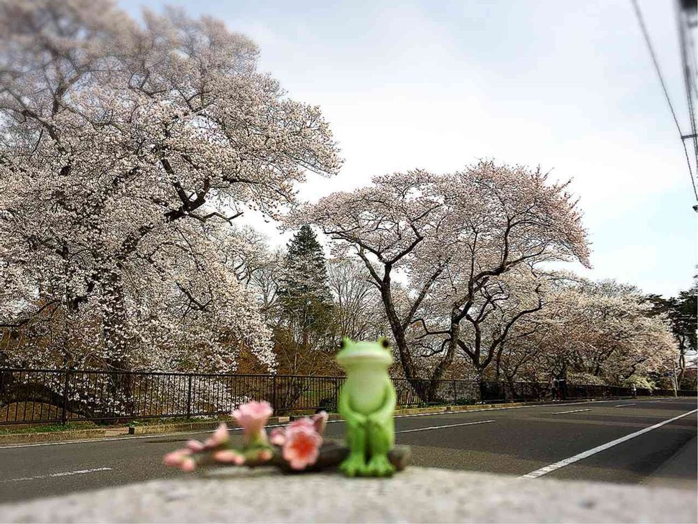 🐸コポたん💕 🌸をバックにちょこんとお座り