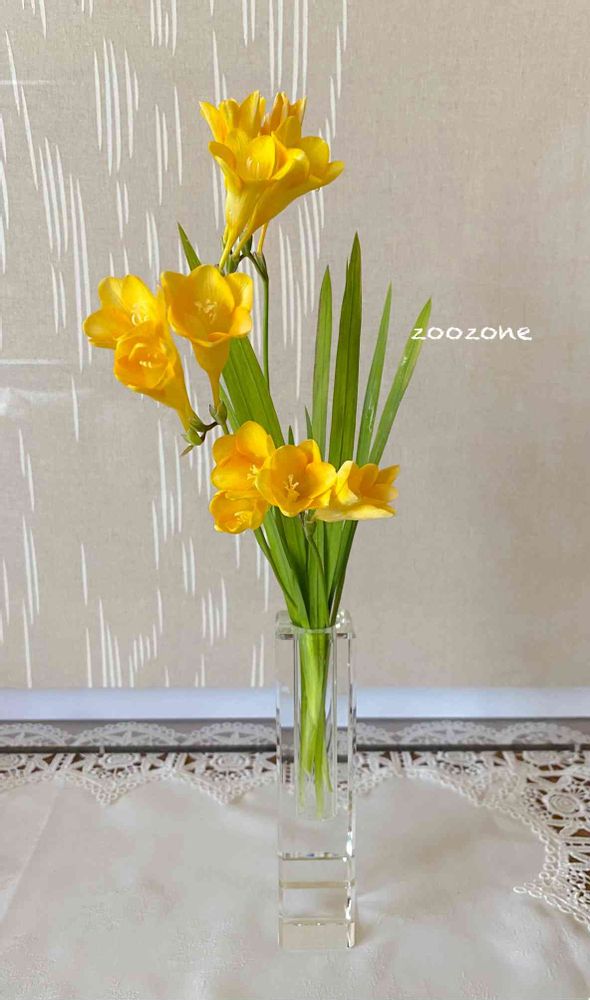 父は園芸が好きで、農学部出身で、私が小さい頃、庭に温室まで建てていました。いろんな植物を見ている父が好きだと言ったフリージアは、魅力が満載なんだと思います🌼🌼🌼