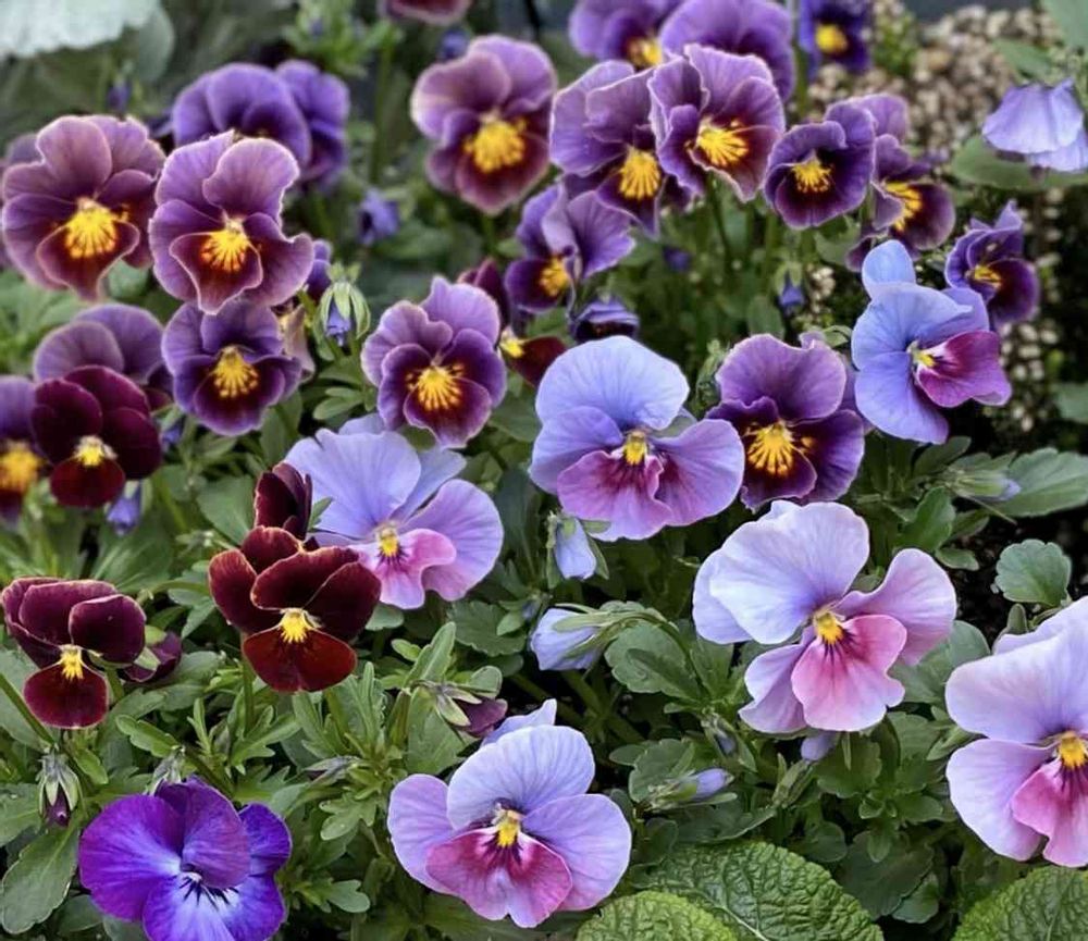 外壁沿いの花壇に植えたパンジー・ビオラの一部です⚘⚘⚘