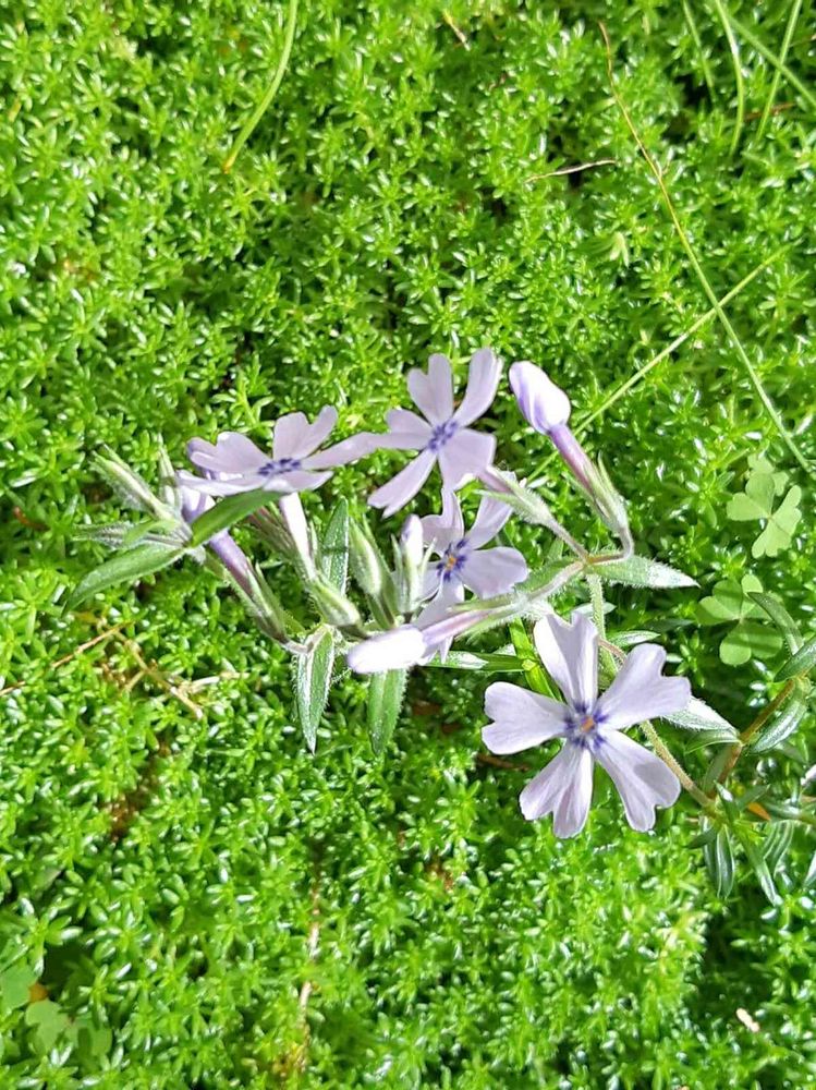 セダムの勢いにはかないませんが、昨年挿し芽した芝桜が増えて開花しました😄