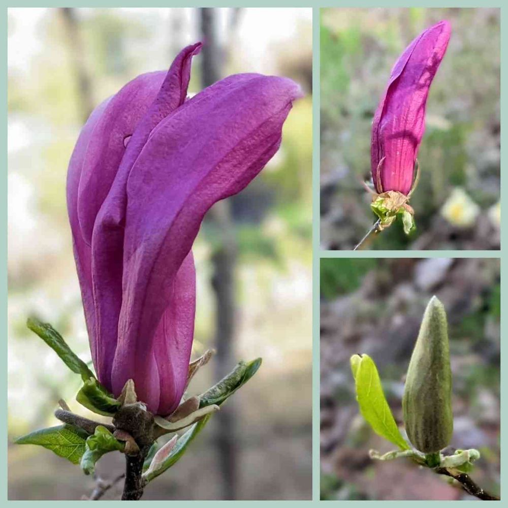 今朝のいつも写して来た紫木蓮の蕾…今朝少し開きました