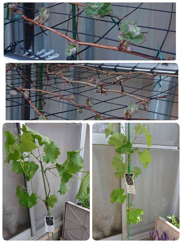 去年の5月5日(水)に迎え入れたブドウ(巨峰)の新梢が見えて来ました🎵