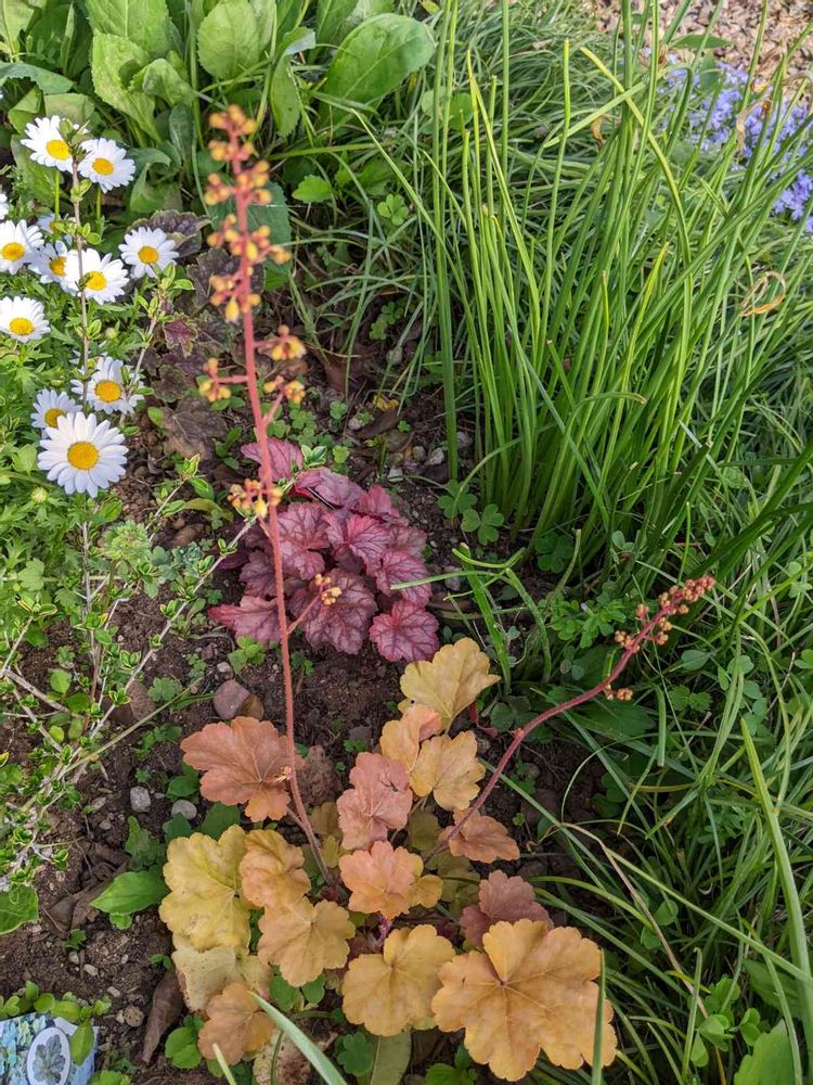 ヒューケラーキャラメル色。花が開花🌼🤭😅