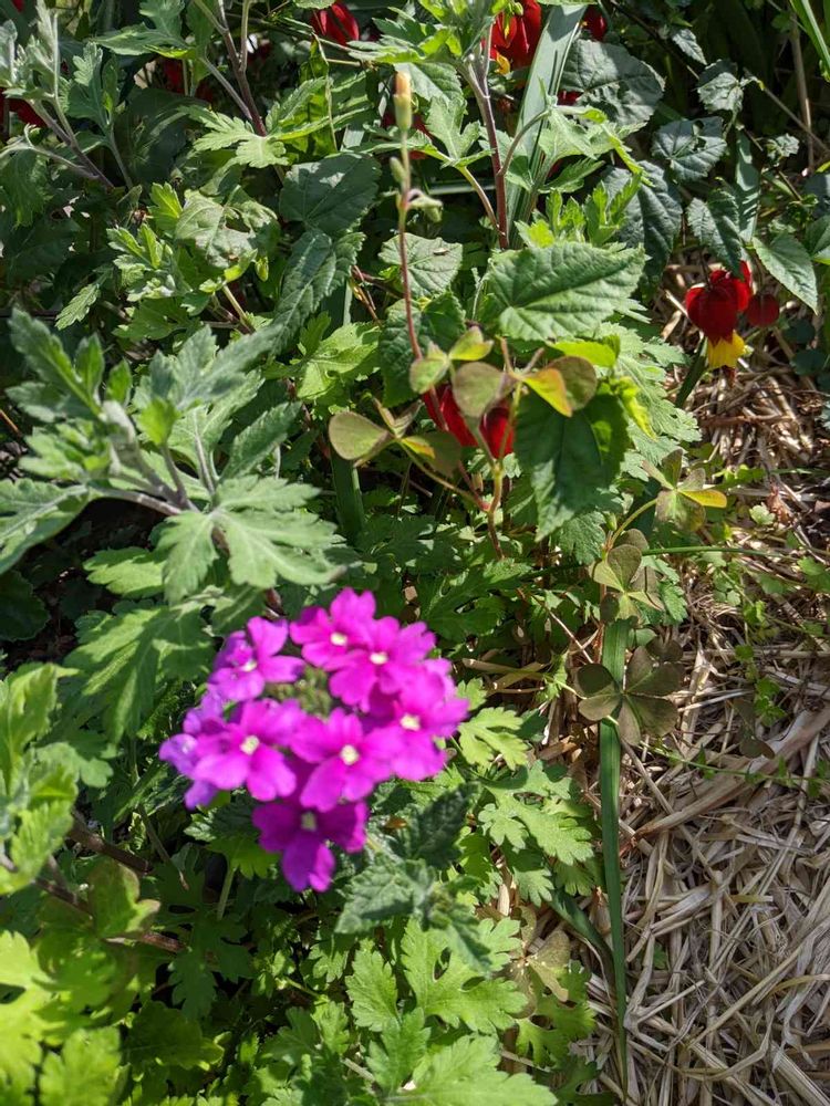 バーベナーピンク色。木戸先に開花