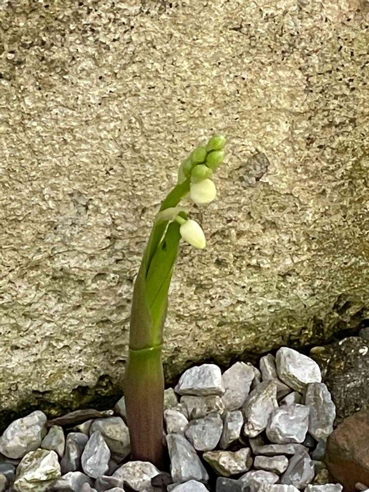 去年お花の後でお分けしたお向かいさんのスズラン、無事に根付いてお花咲いたようです🌼