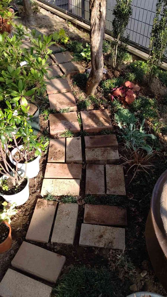 小さな庭,地植え,レンガの小径の投稿画像